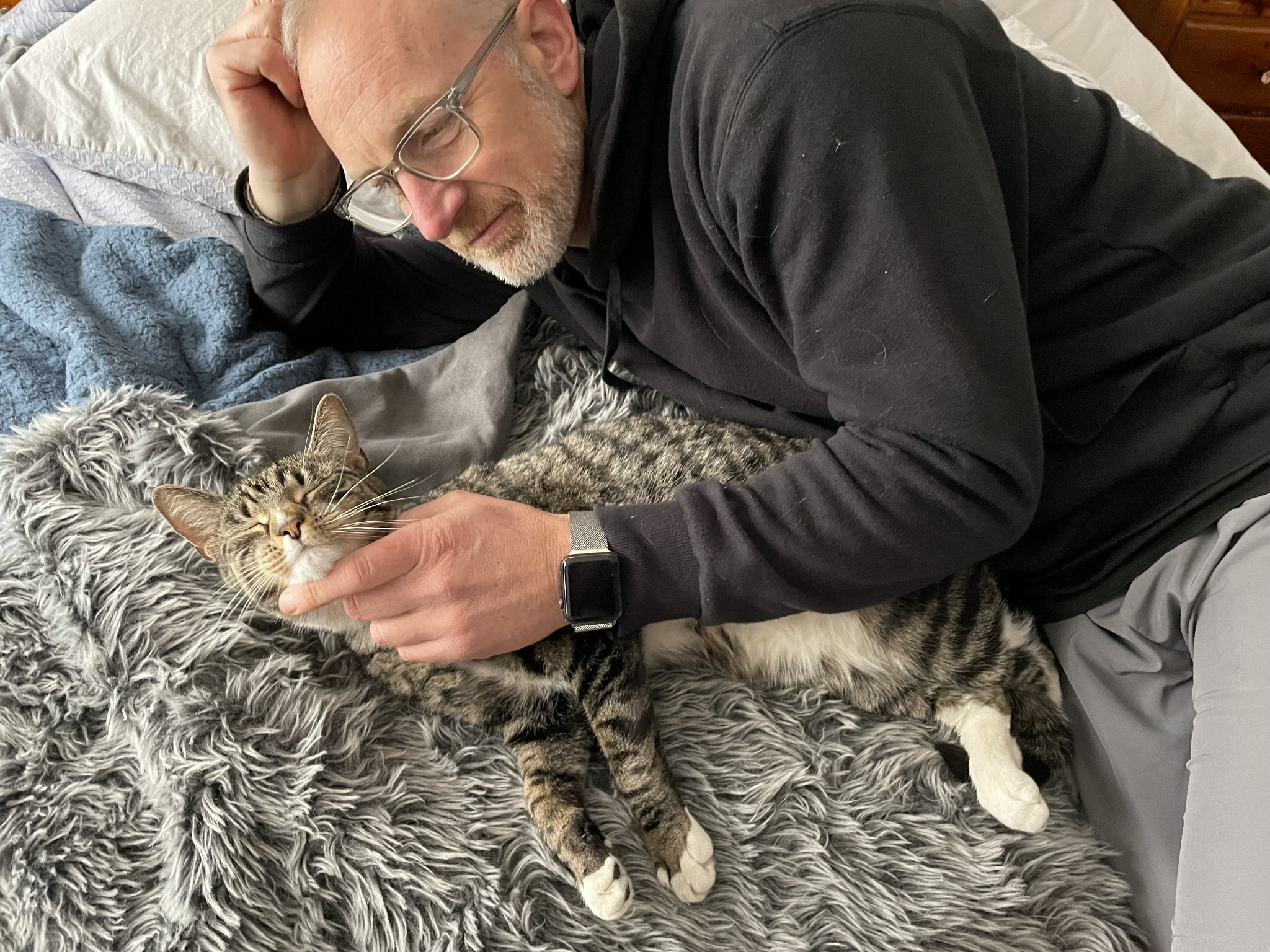 "The great thing about being a cat dad is that they provide perspective! No matter what’s going on in your own life, or the world at large, there’s a little kitty that needs your love and attention, it’s very grounding. More cats is more of that, plus they keep each other company when you’re out (as a cat dad of 3, multiple cats is totally worth it!)"