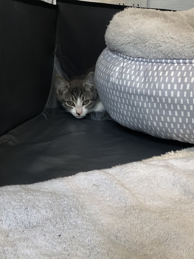 It's not always an easy ride. There were times like in this photo, where the kitten was scared to come out and meet her new humans