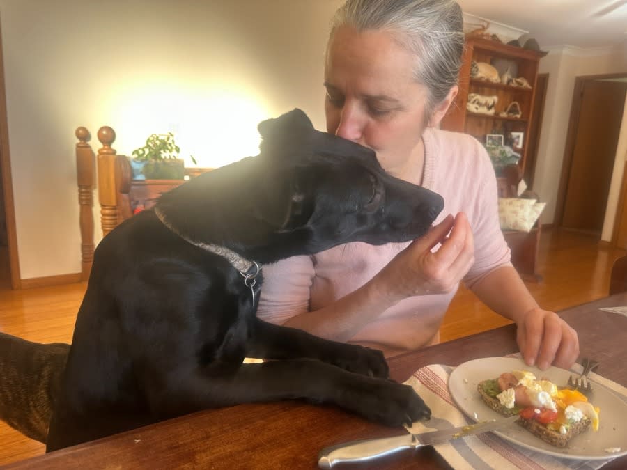 “She’s quite a cheeky little girl and loves to play and get cuddles. Often when we’re watching TV she’ll snuggle between Daz and me to get cuddles. She is super smart and her ability to learn new commands is great. She’s curious, affectionate and likes to be with you.”