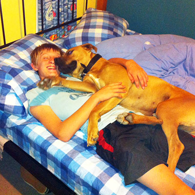 "Ammo is one of the family. For a big tough dog, he is so gentle with other dogs and friendly with people. My boys and I love him so much. We are really lucky to have such a noble companion." - Karel