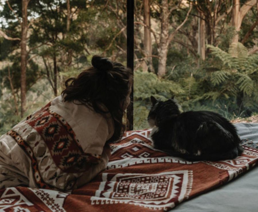 ‘’He looks to us for safety, so as long as we are with him, he feels at home. A big key to car trips is keeping everything relaxed before we leave. He knows when we are packing the car for a trip. We try to stay in pet-friendly accommodation where we can. Boogie is very well toilet trained, will always use his scratching post and settles into a new location quickly, so he is easy to travel with.’’