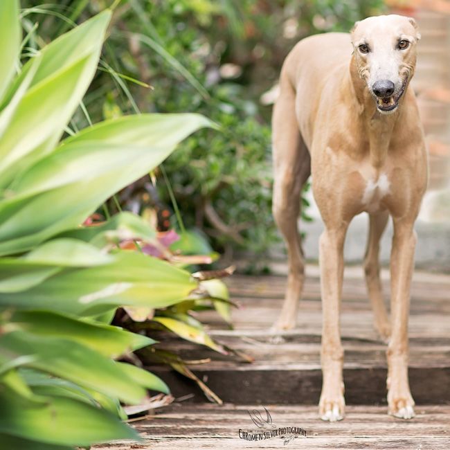 A great photo finish for a shy rescue greyhound