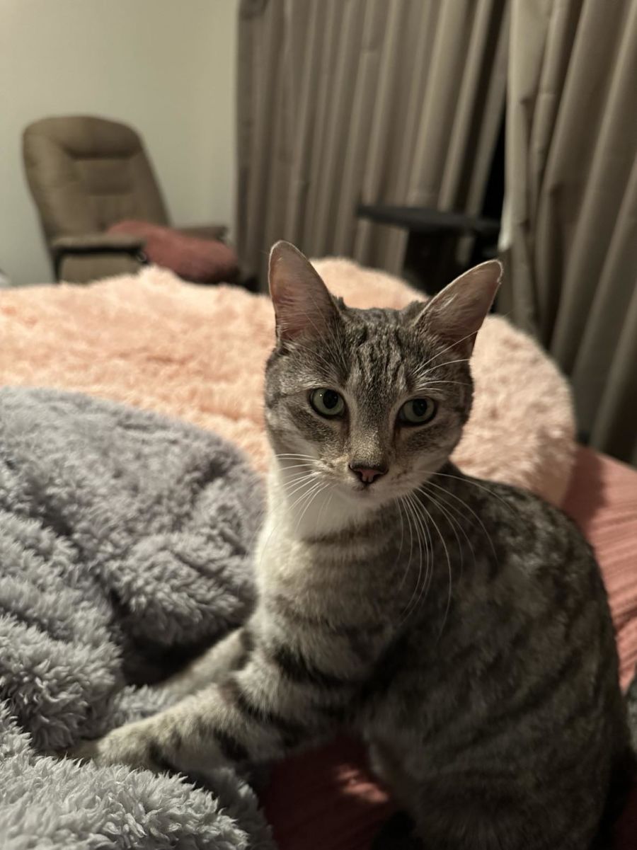 Zara is hard to get a good photo of because she is always smooching for your love. A beautiful girl that will knock the phone out of your hand with her headbutts & will knead the blanket on your lap as long as you let her. She will greet you with adorable chirps when coming home for the day & will follow you around from there.