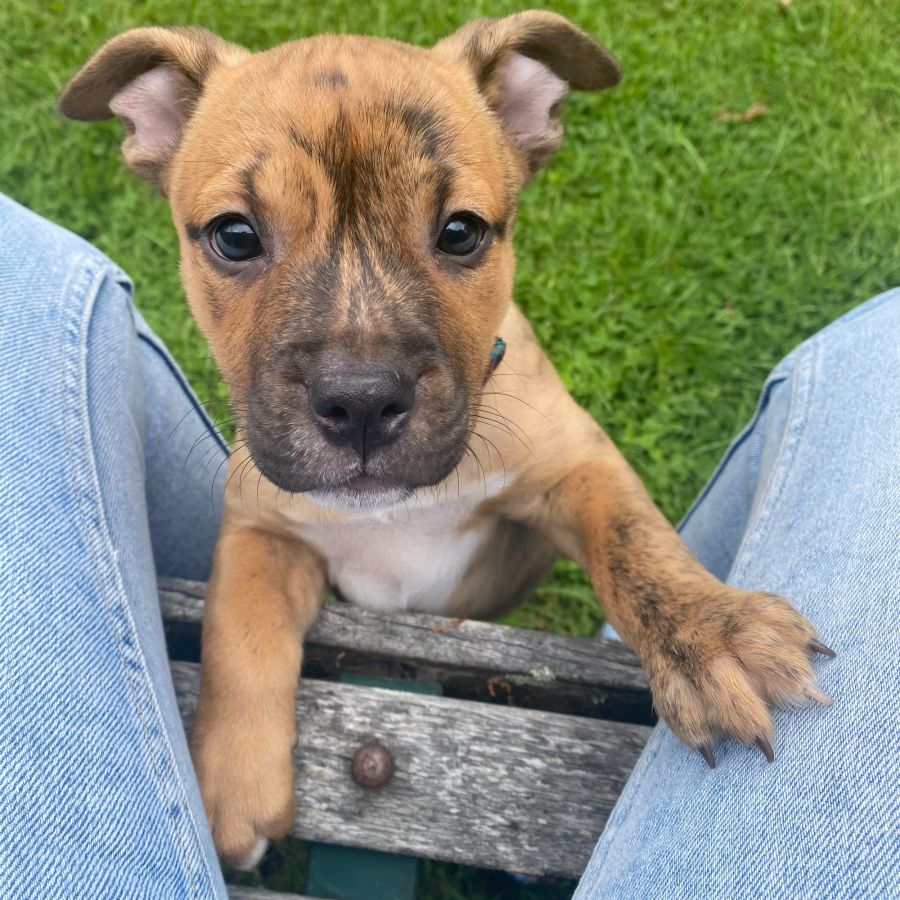 Meet Pepper, an adorable staffy x puppy who will undoubtedly spice up your life with her playful spirit and boundless love. This sweet little pup may be small, but she's got a big personality and an even bigger heart. Pepper is a rescue who's ready to start her journey with a forever family that will cherish her every day.