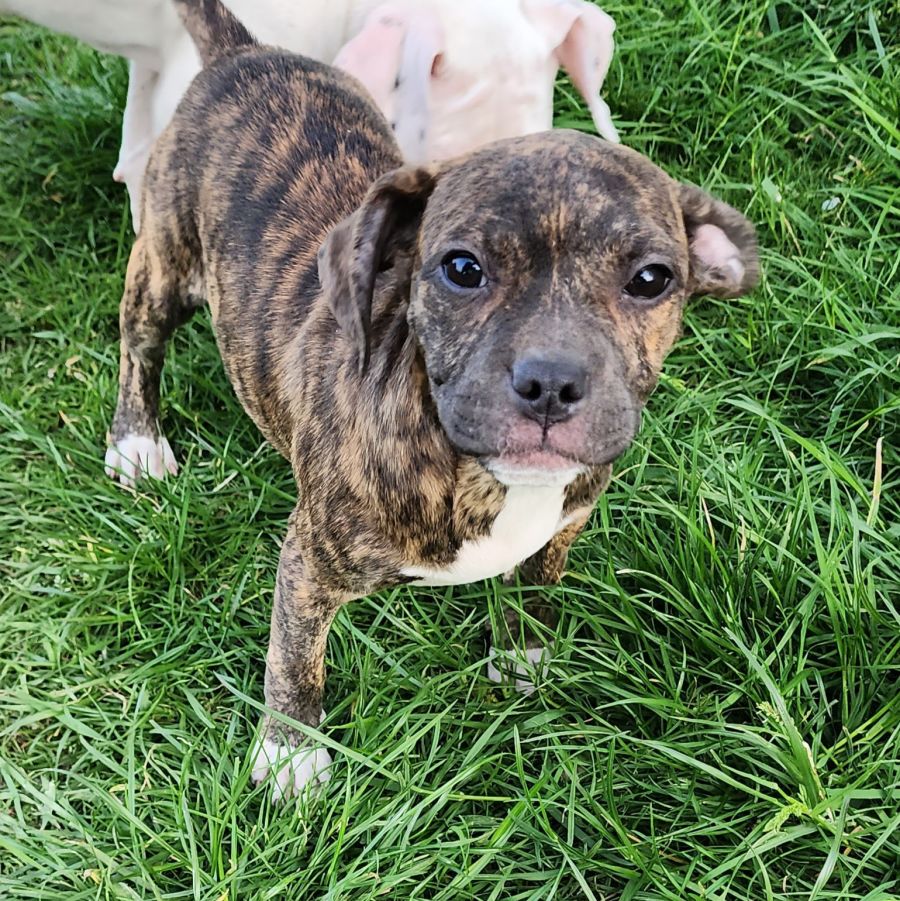 Boo, a delightful Staffy mix breed puppy, is overflowing with joy and promise.