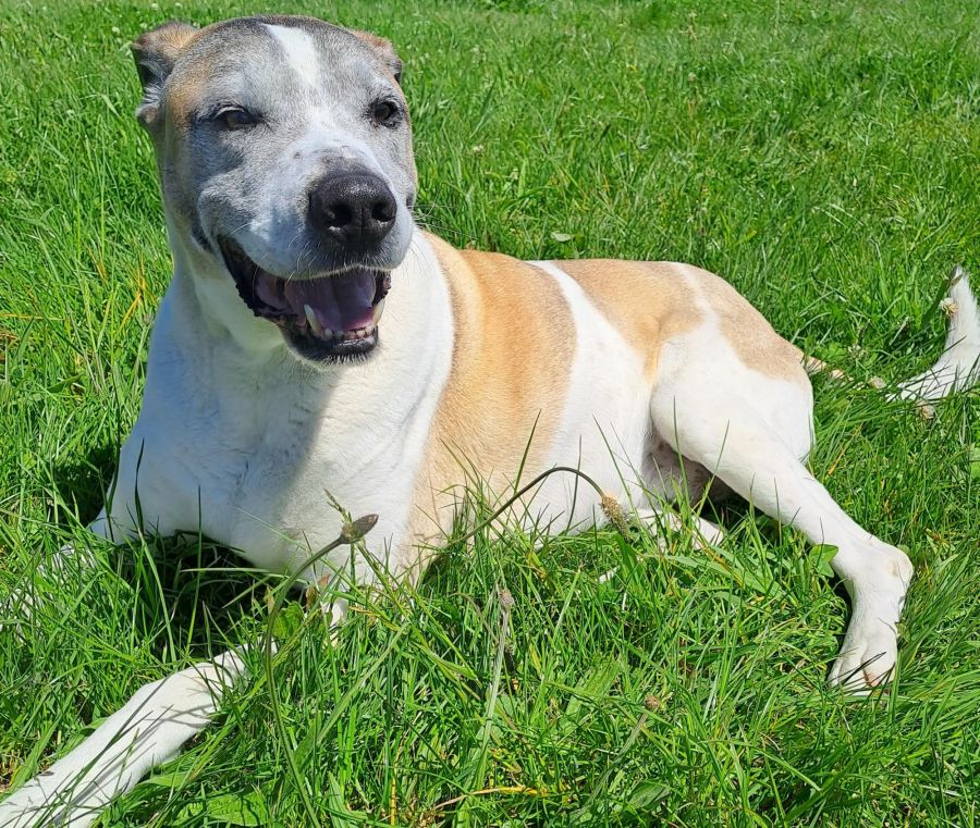 Jethro is a 12-year-old old soul who loves nothing more than being around people. He enjoys getting attention and affection - he'll give you a big smooch if you let him! He will happily follow you around the house just to be close. Despite his age, Jethro has plenty of energy and loves going for walks. He's a real softy at heart though, so much so that he cannot help but wag his tail when anyone looks at him! Despite having lived a long life, Jethro still has plenty to offer an adopter - he is sure to bring lots of love into your home.