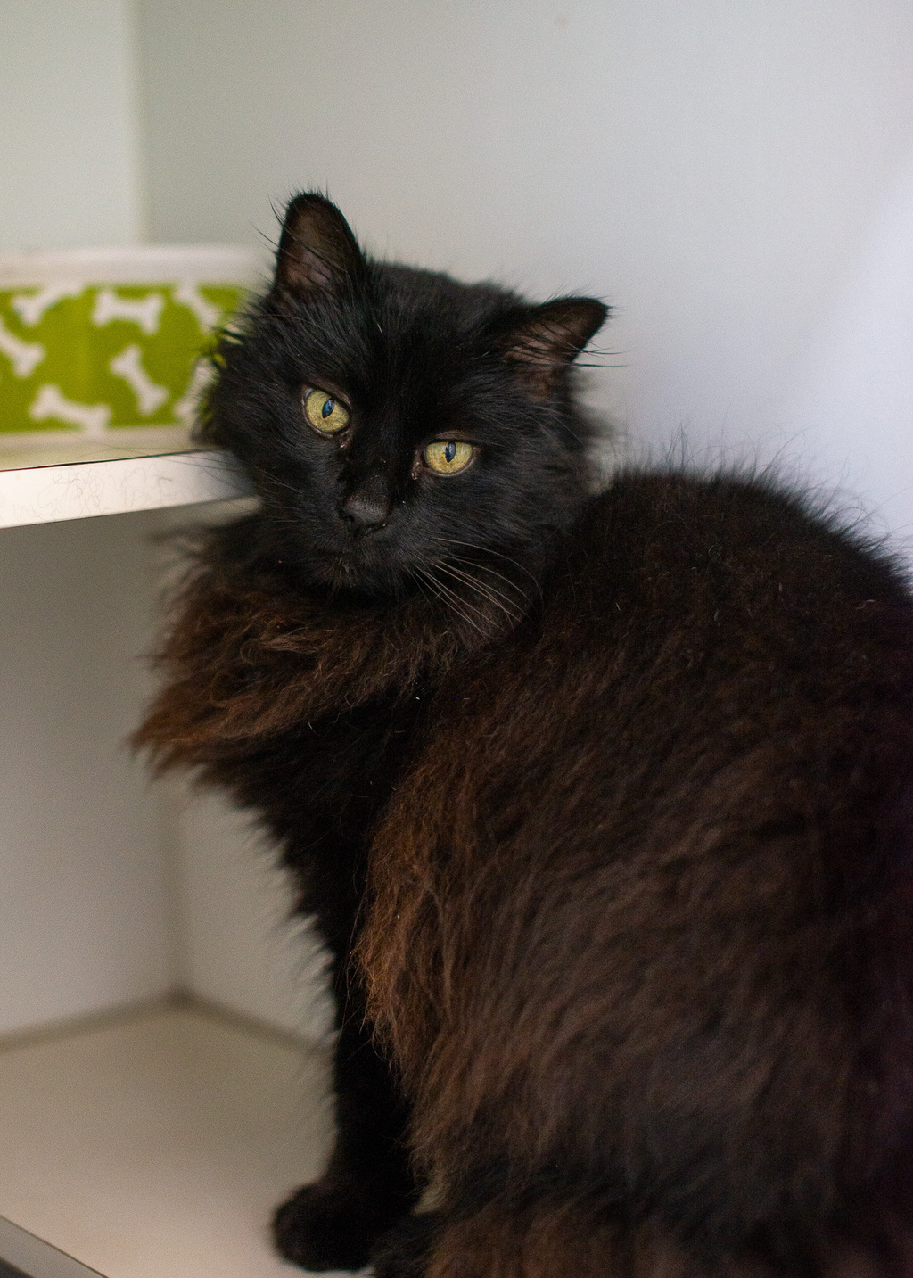 Greetings, potential pet parents! Allow us to introduce you to the delightful Panther, a 10-year-old, fluffy black cat with a heart as big as his purrs. Panther is a true social butterfly, incredibly chatty and has a passion for lounging on laps and relishing in gentle brushing sessions.