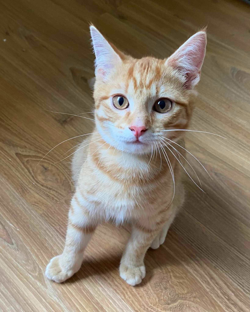 I am a typical orange boy, đ silly, floppy, smoochy, confident, playful and cuddly. I love toys, especially wiggly ones, playing chase with my Brother and most of all cuddles and pats! I have the cutest loud purr that starts up as soon as you pat me! I love people, big and small. I am a little bit wary of those things called doggos but with the right introduction i think they might be ok.
