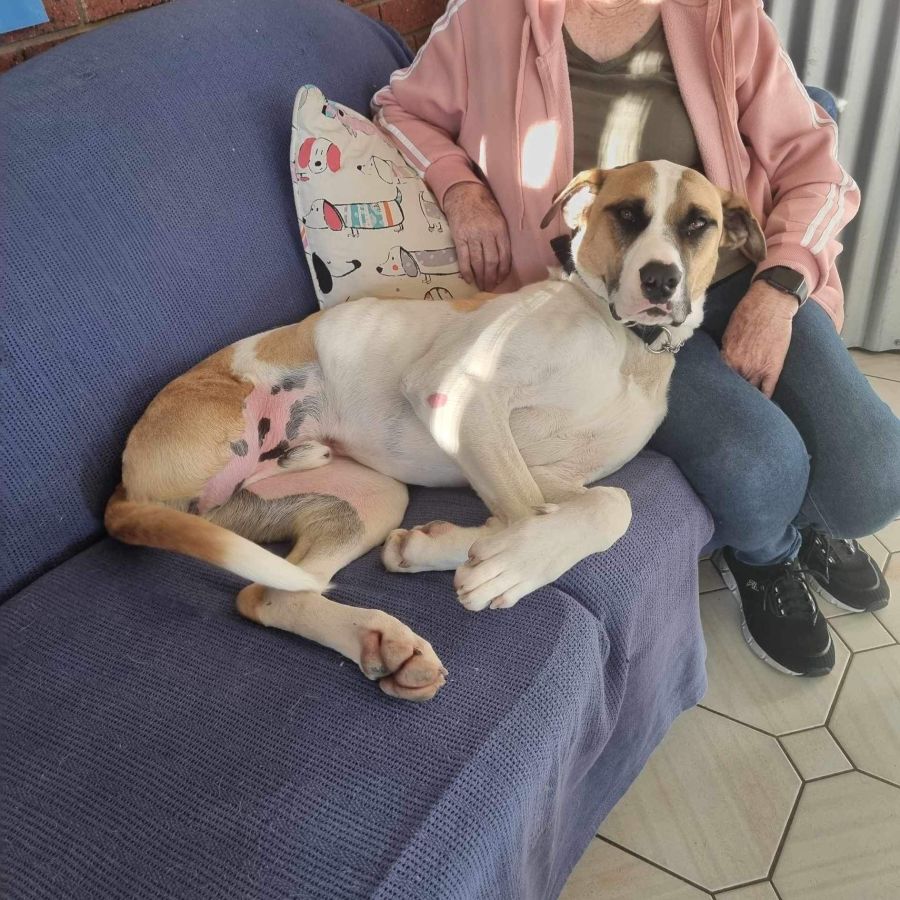 He loves water, loves his walks and just loves cuddles on the couch.