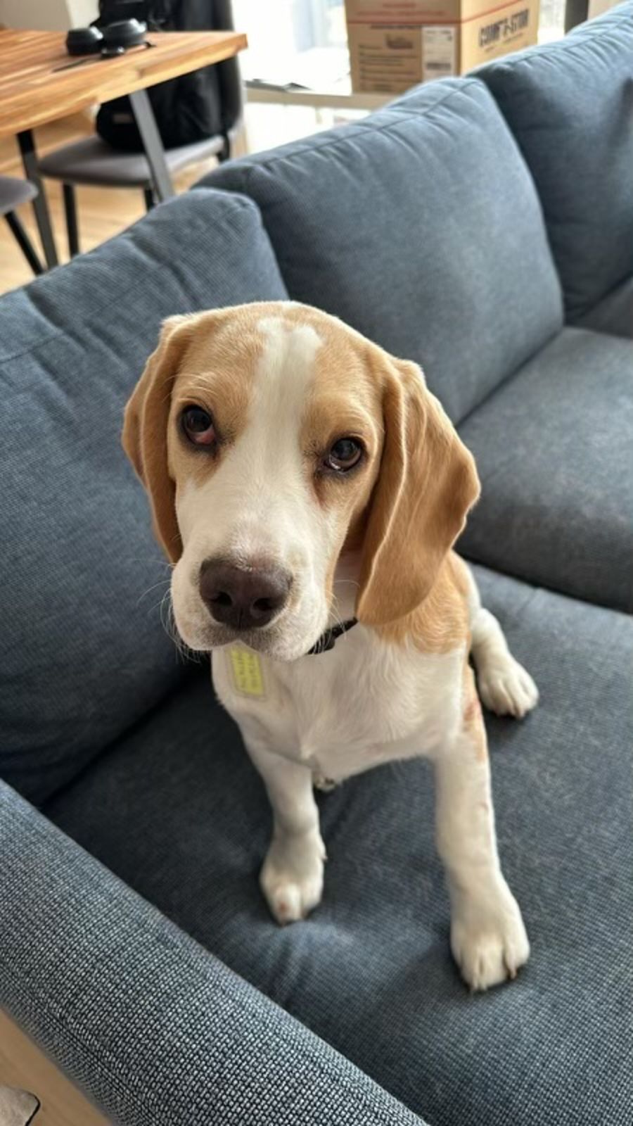 Bobby came to us due to breeder being unable to sell due to Cherry eye. He is a beautiful 7mth old Lemon and white pure beagle.