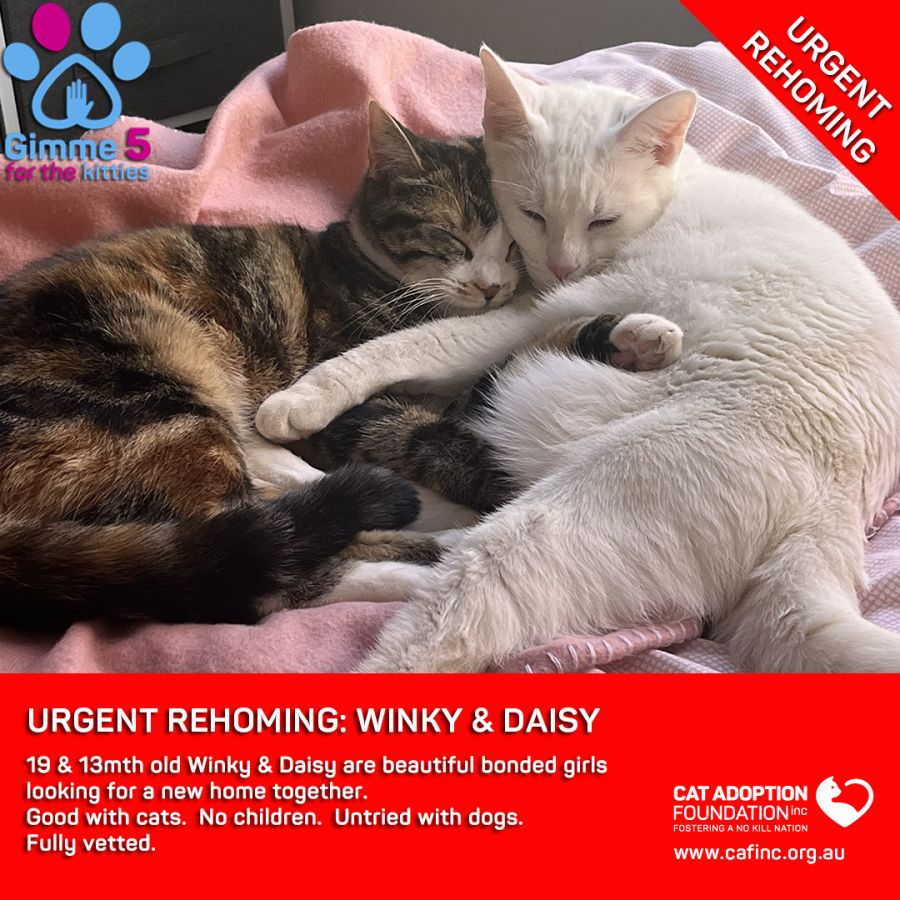 Donate to Winky & Daisy Private Rehoming No Charge! at Cat Adoption Foundation Incorporated via Shout