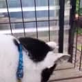 Monty has made friends with the kitty neighbours in the cattery nextdoor. He is very fond of the 2 labradors he lives with and likes to touch noses. He has met a jack russell too and said hello through the mesh, so he would be fine to share his home with a dog/cats.