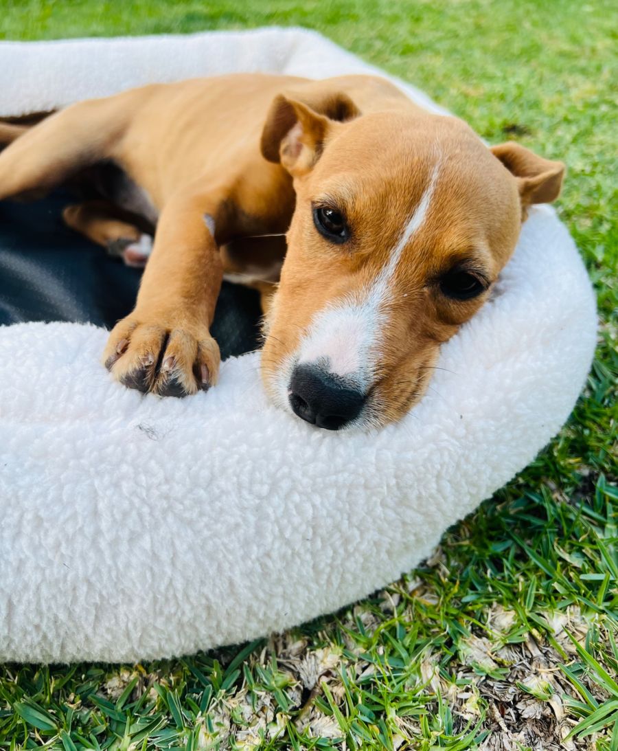 At just 14 weeks old, she is a playful and smart American Staffordshire Terrier x Kelpie mix.