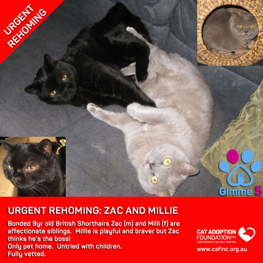 Donate to Zac and Millie Private Rehoming No Charge! at Cat Adoption Foundation Incorporated via Shout