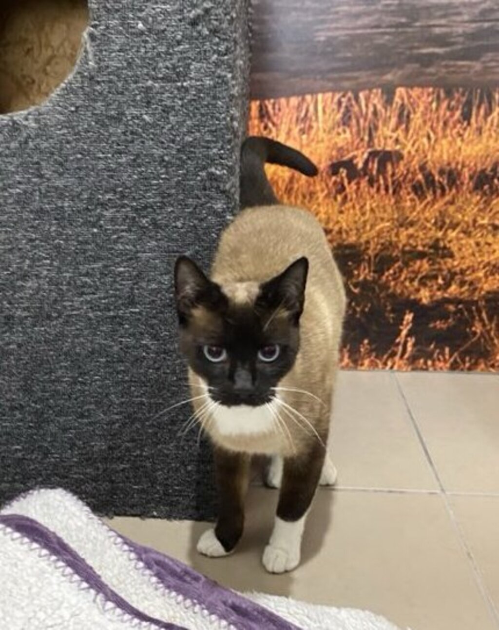 Meet Mishka, a delightful Snowshoe with a sweet and gentle nature. Mishka is the epitome of feline charm, boasting a striking coat and an equally captivating personality. This lovable girl is in search of a forever home where tranquility and affection abound.
