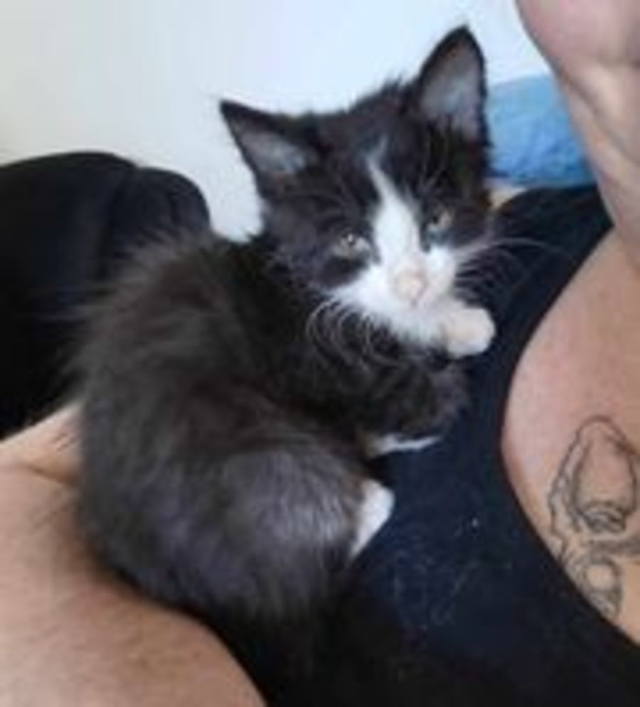Bubba is an adorable 9 week old black and white handraised kitty looking for his forever home. He may be a little shy at first, but warms up quickly, especially when you reach out to pet him. He loves cuddling and smooching and will make a great companion to snuggle up with. Bubba also loves playing with toys and can usually be found chasing around a toy mouse or batting at a feather wand. He is very friendly with small dogs, so he would fit in well in a home that already has furry companions! With patience and kindness, he’ll come out of his shell and show you all the love he has to give.