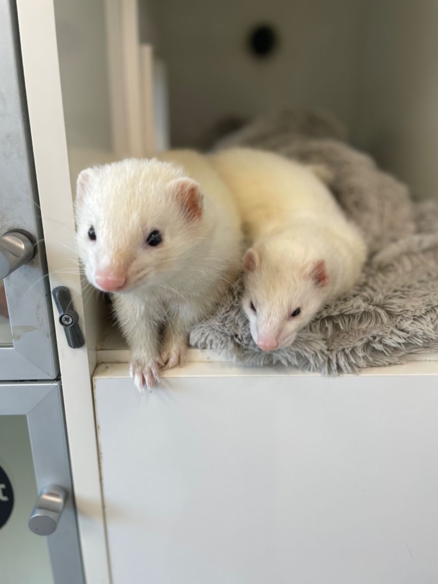 They enjoy playing with toys and going on adventures around the house, making sure to check out every corner of their domain. No matter what they encounter, these two stay cheerful and make sure to always be there for each other. They both would love to find an experienced Ferret owner, as they do tend to be a bit nippy when they get a bit over excited.