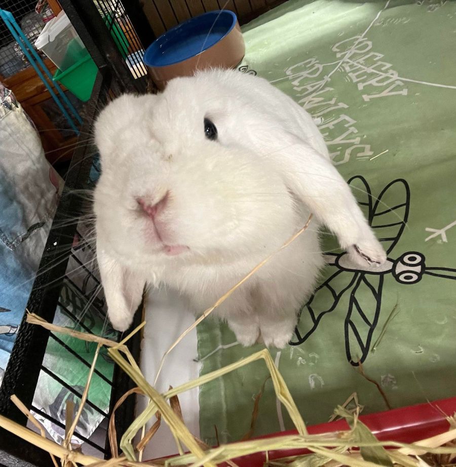 Meet Prince George, a fluffy white lop with a heart as big as his soft, velvety ears! 🐰💖