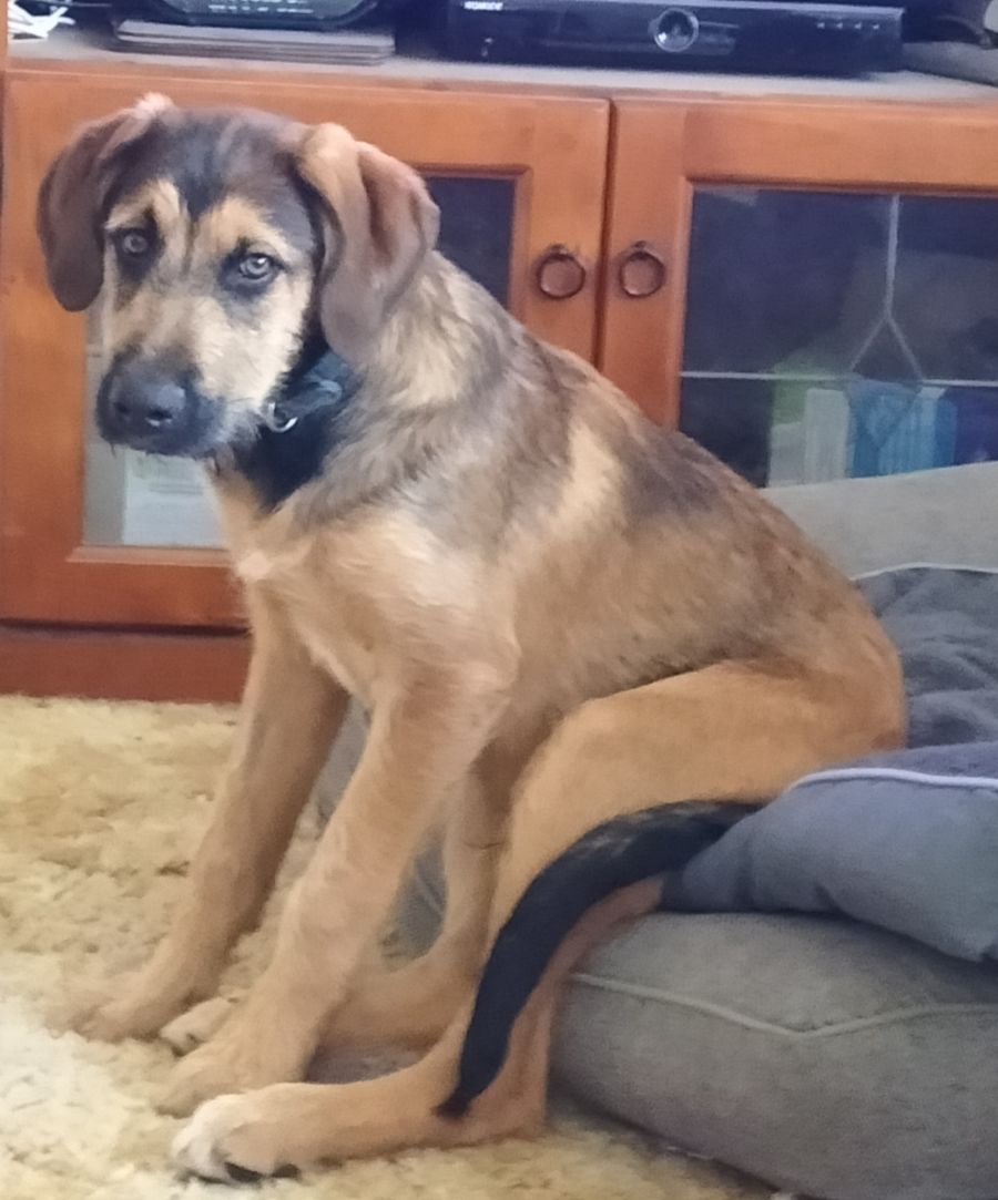 I am just over 15kg already and I am only 21 weeks old. My date of birth is 28 May 2023. My breed is......wait for it: My dad is a Wolfhound x Staghound - a handsome hairy bloke like me. My mum is a German Shepherd x Rottweiler but she looks more like a Rottweiler. I came from a large litter - yep there were 11 of us running around. I take after my dad mostly being a shaggy fellow.