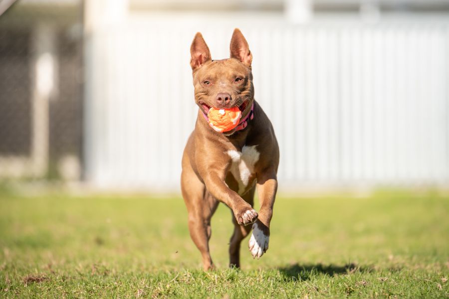 Prancer is quite the character, delighting everyone around her when she prances like a deer when happy. She’s also quite obedient, as she knows how to sit on command, but when excited she can be strong on the lead. She loves toys and enjoys running around with a ball in her mouth whilst you chase her! She is also a huge fan of water and loves running and playing in a shell pool.