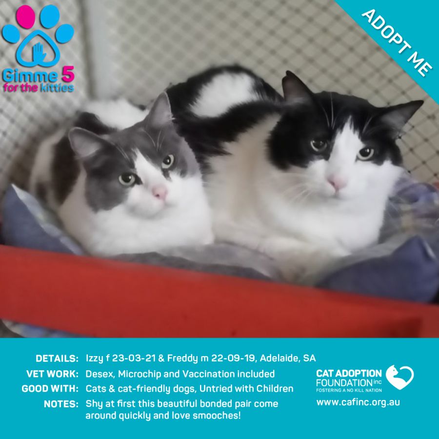 Donate to Izzy and Freddy at Cat Adoption Foundation Incorporated via Shout