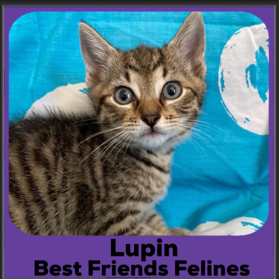 Lupin is a little ball of love, and everyone who meets him loves him so! Lupin is such a character with a personality much larger than he is. From waiting patiently to be picked up and told what a lovely lad he is, to sprinting around the room with his kitten siblings. Lupin enjoys all the classic kitten pastimes: feather on a stick, ball with a bell in it, wrestling with his brother Shamrock, a great big gravy-laden kitten dinner, and a long purring cuddle. Lupin is a delightful little lad that would suit a variety of households, he can’t wait to meet you!