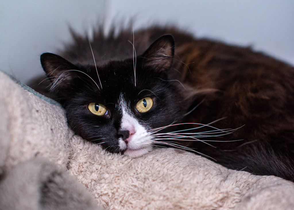 Are you looking for a companion who's as charming as he is handsome? Look no further than Shadow, the 6-year-old black and white long-coated cat who's ready to steal your heart.