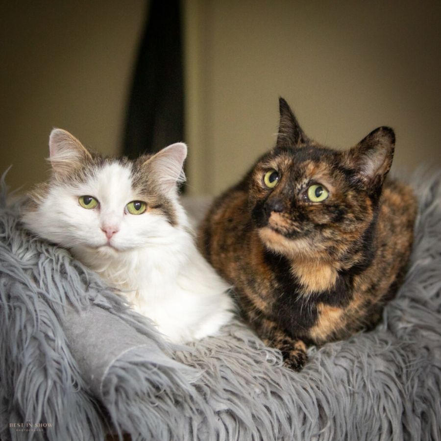 This torti girl is one of the sweetest torti’s her foster carer has met. DJ is reserved at first but a scratch near the base of her tail and she is yours. She is very protective of her best friend MJ. She is very in tune with her. DJ has become a very confident girl around the foster family’s super cat cool dogs. MJ - Molly Jo however is not very trusting of them so a home without dogs would be so supportive of both the girls. DJ has made great friends with a male cat in the foster home but has tried to pull rank on the females therefore a home without cats so the girls can call their new home theirs would be the best outcome we are seeking for them. At night DJ loves to have the run of the house and will climb into your arms or bed for a snuggle just to show her appreciation and love. We have noticed she gravitates to the male in the house for affection which is not that surprising considering her past owner was male. She has moments of needing to bust out a zoomy which is rather short lived & funny to hear. She will chirp away to you and follow you about for company then in a blink she has decided to nap with MJ. She shares her love around perfectly. DJ is a bit of a plant chomper. A home with indoor plants needs to be aware of what is safe for cats and what is not.
