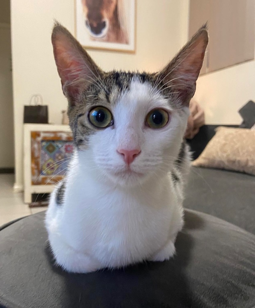 Meet the adorable and super sweet Muffin. She was one of 3 kittens who emerged from under a house in search for help and food. The litter were then successfully attached to mumma Cat Pringle and her 4 biological babies.