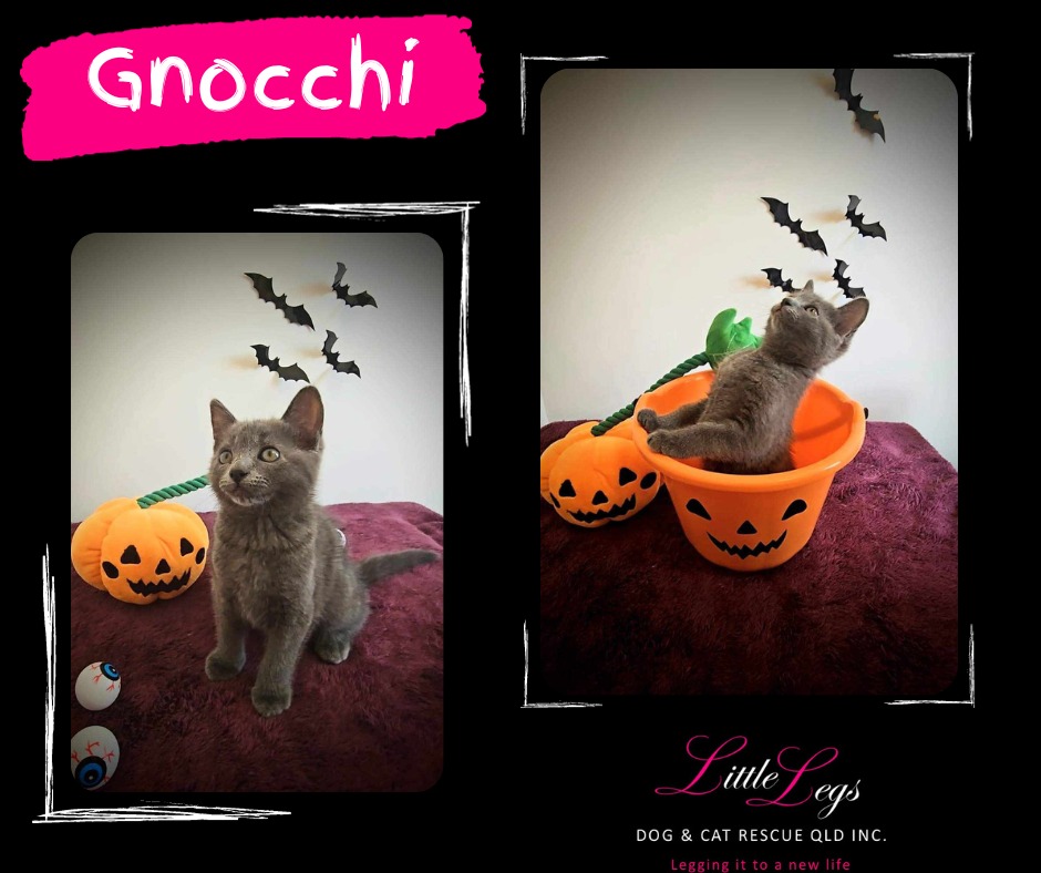 Hello Everyone! I'm Gnocchi, one of the Potato Litter kittens. I'm different from my three siblings who have tabby coats as I have a beautiful grey coat with a hint of fluffiness. My foster family thinks I have a majestic little face with soulful eyes. I love play fighting, chasey games, the cat tower and my food. I love to explore the house and check out what everyone is doing, one time I ran up my foster dad's leg to see what he was cooking. At night I snuggle with my human and kitten sister. I know I'll make a wonderful addition to your family!