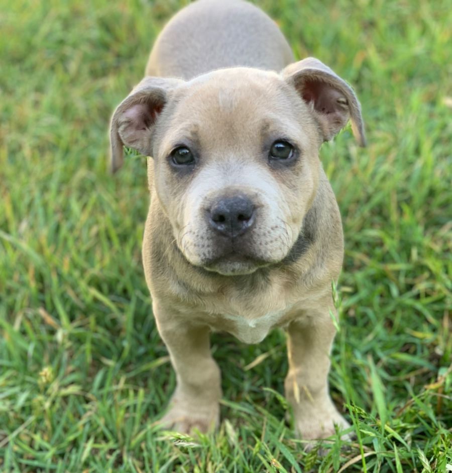 🐾🐶 Meet Lily, our adorable 9-week-old blue/fawn American Staffy pup looking for her forever home! 🐾