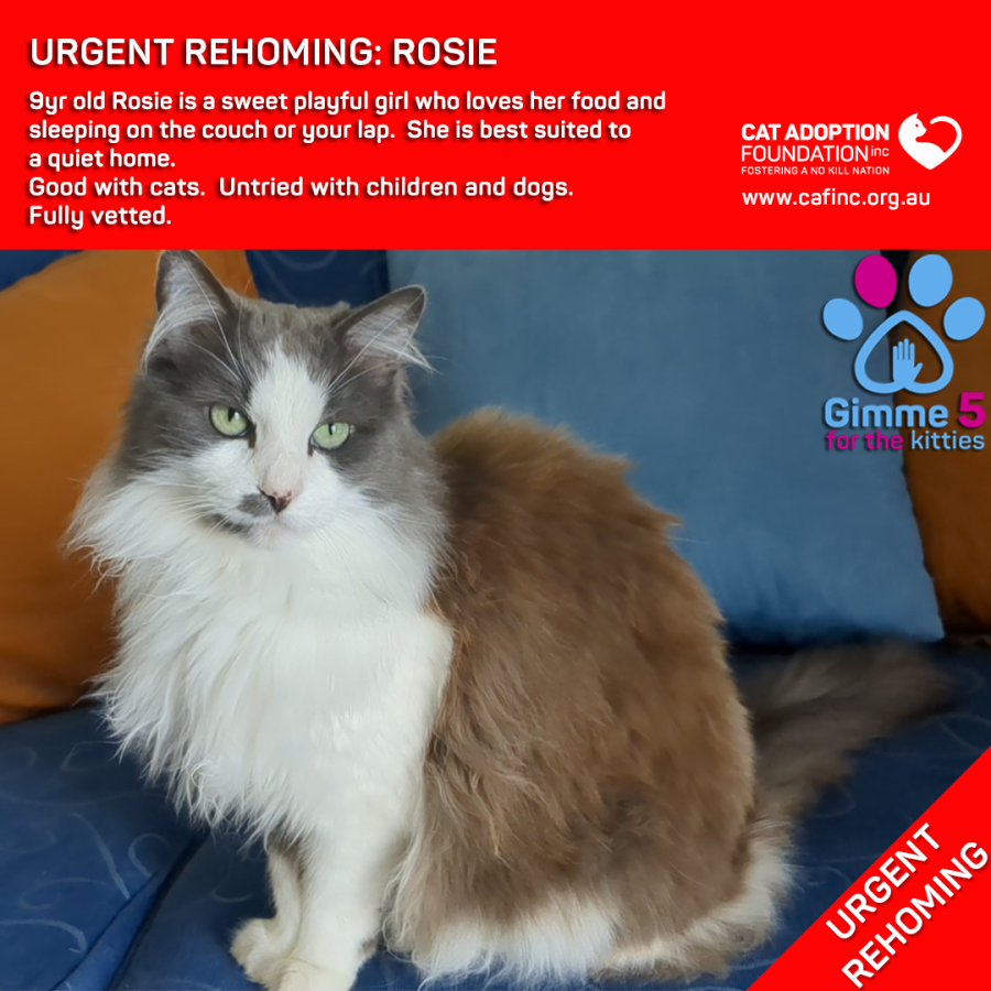Donate to Rosie Private Rehoming No Charge! at Cat Adoption Foundation Incorporated via Shout