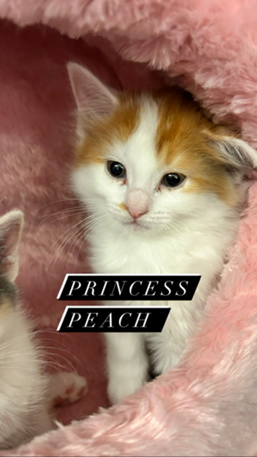 đ±Princess Peach- Princess Peach is a sweet and spunky female kitten looking for her forever home. She's a curious little one, always exploring and ready to find all the fun she can! Princess Peach loves cuddles and will happily curl up in your lap for hours at a time. Despite her small size, she has a big personality - she loves playing with toys and chasing her tail.