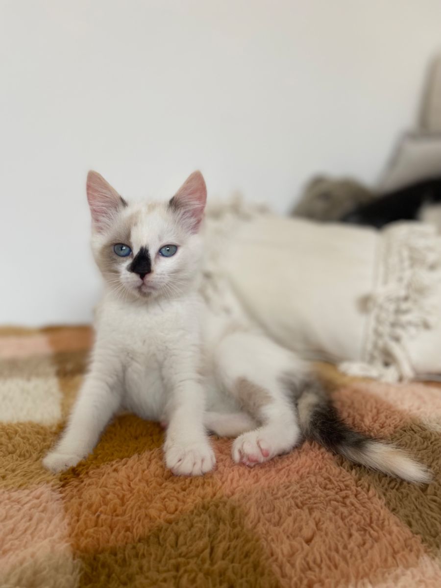 Effie is a sweet and cuddly 9 week old female Ragdoll X kitten. She loves to be around people and enjoys getting lots of attention. Her gentle nature makes her a perfect companion for those looking for a more relaxed pet.