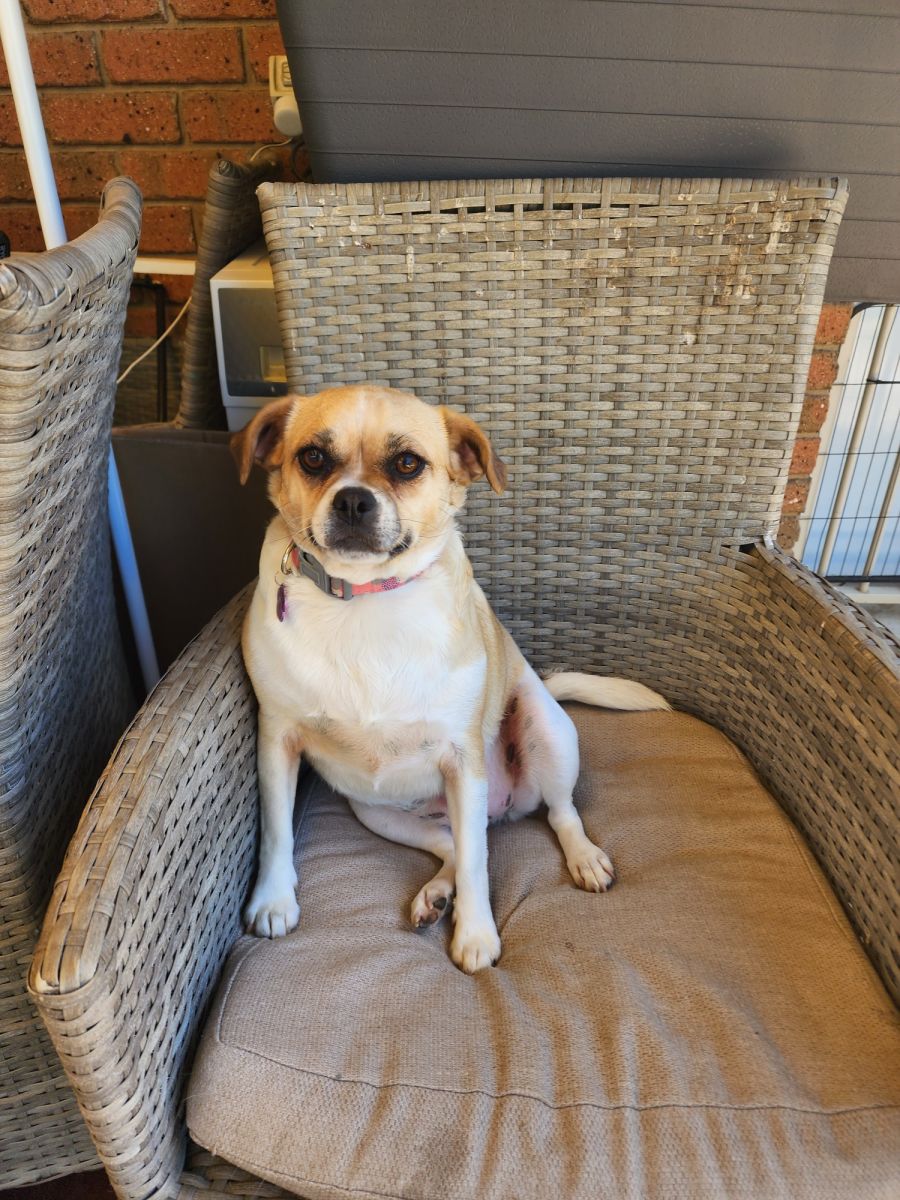 Lunar is a 2 year old chug!! She is such a friendly and playful girl, she has loads of energy to burn! She loves playing with dogs of a similar nature and energy level to her so we think she needs to go into a home were there is another dog she can play all day with!
