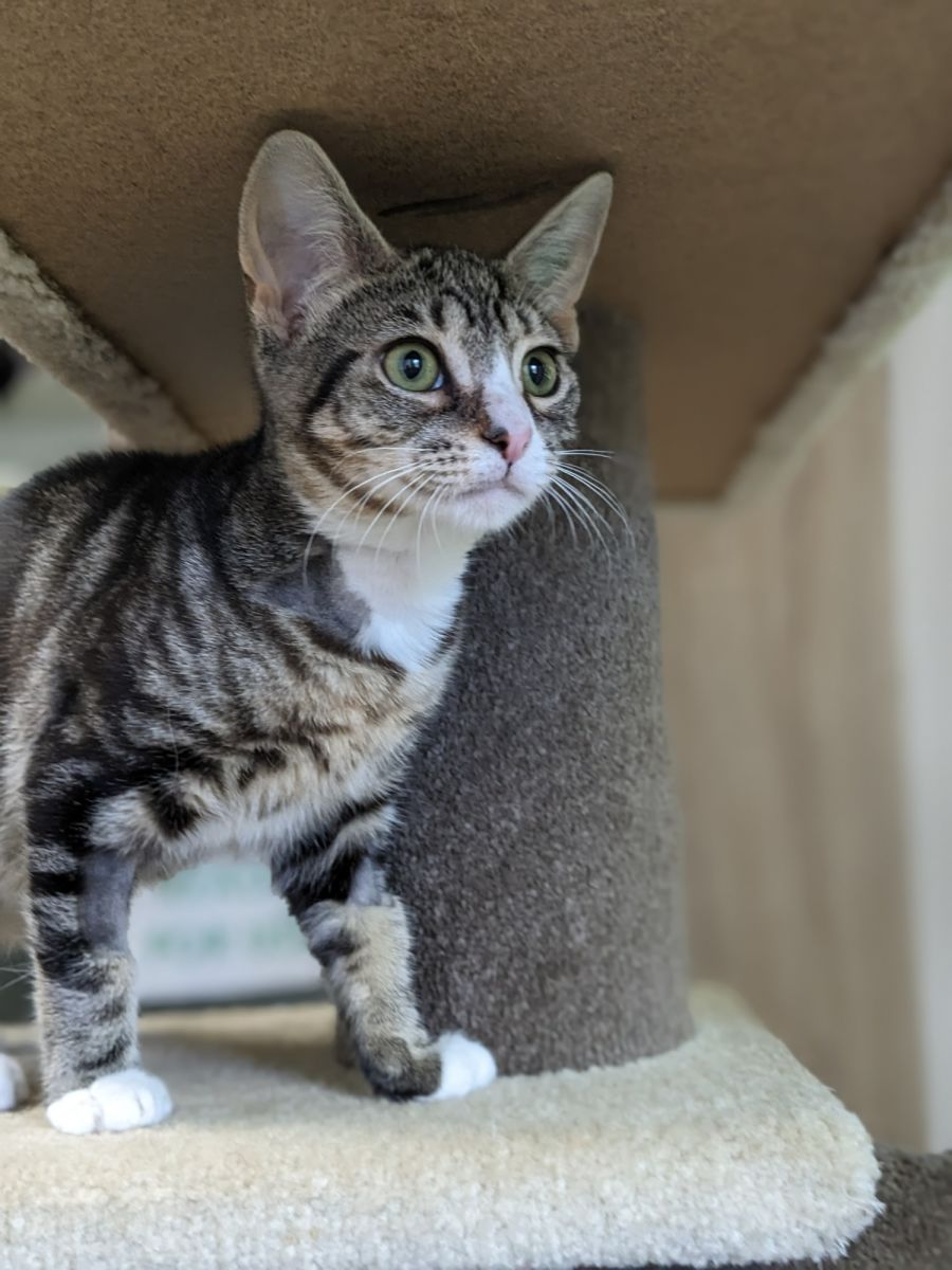 Leonardo is a sweet and playful five month old kitten who loves to explore and play with toys. He has an abundance of energy that he loves to share with the shelter staff, and he's always happy to be picked up for cuddles. Leonardo is a wonderfully affectionate companion who will provide endless love and entertainment in his forever home.