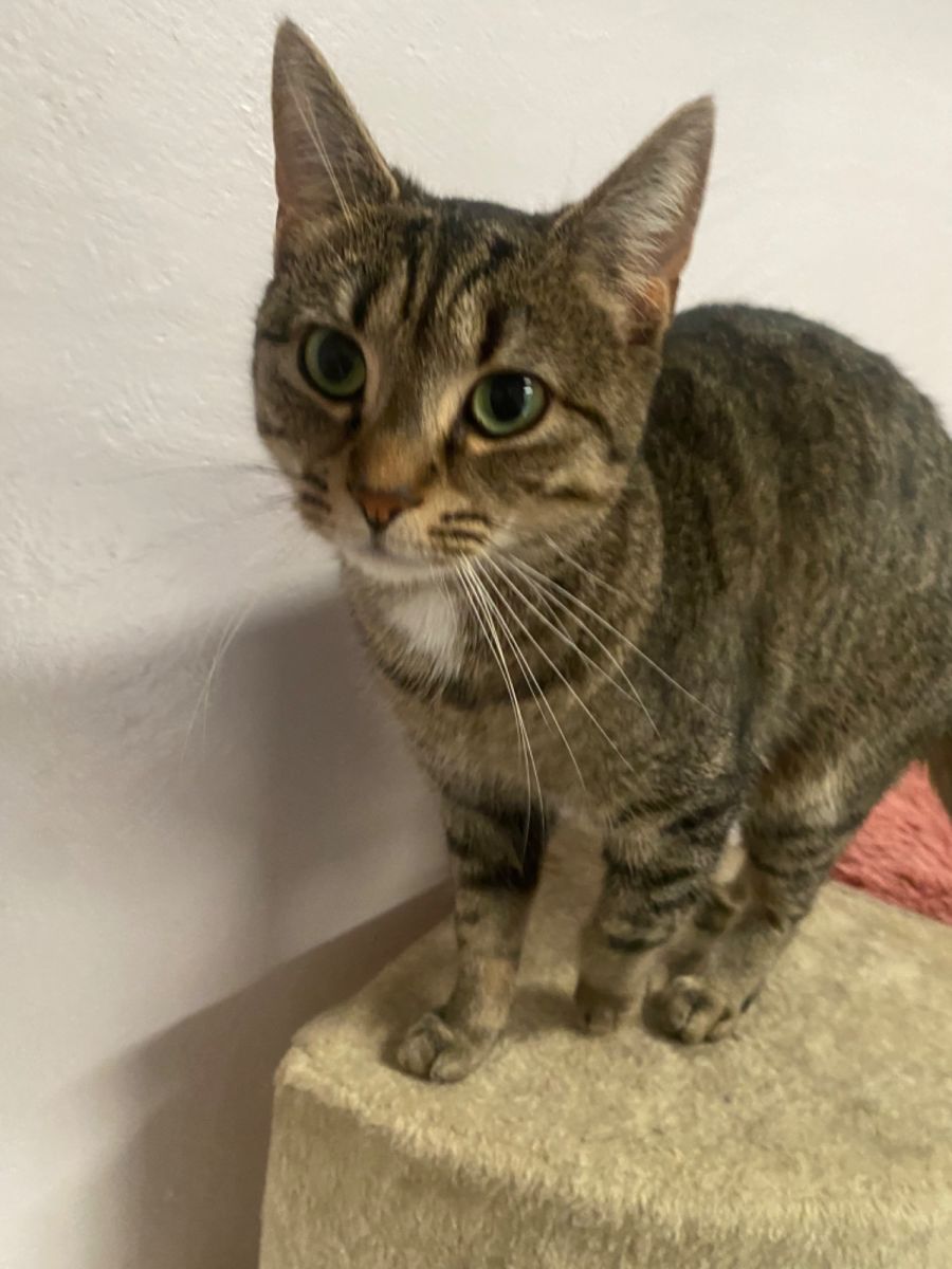 She came to us as a young mum , her kittens now adopted and her turn to find a home. She likes other cats aswell as human attention.