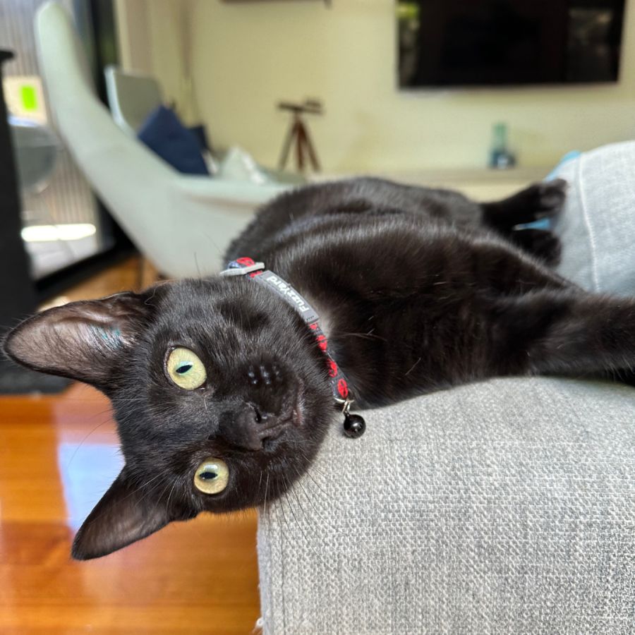 Meet Lachie, a cheeky and curious cat who sports a sleek, glossy black coat that will have you swooning like a star-struck fan. Lachie is a fun-loving feline who spends his days exploring every nook and cranny, displaying a vigorous and playful personality that's sure to keep you amused.