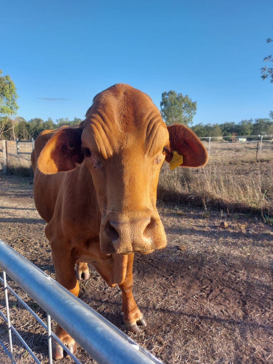 Gally the gorgeous Steer is an absolute charmer and a joy to be around. He was hand raised since he was born, so he is very friendly and used to human company. He is a 3/4 droughtmaster and 1/4 simmental Steer, so his handsome looks are matched by his wonderful character.