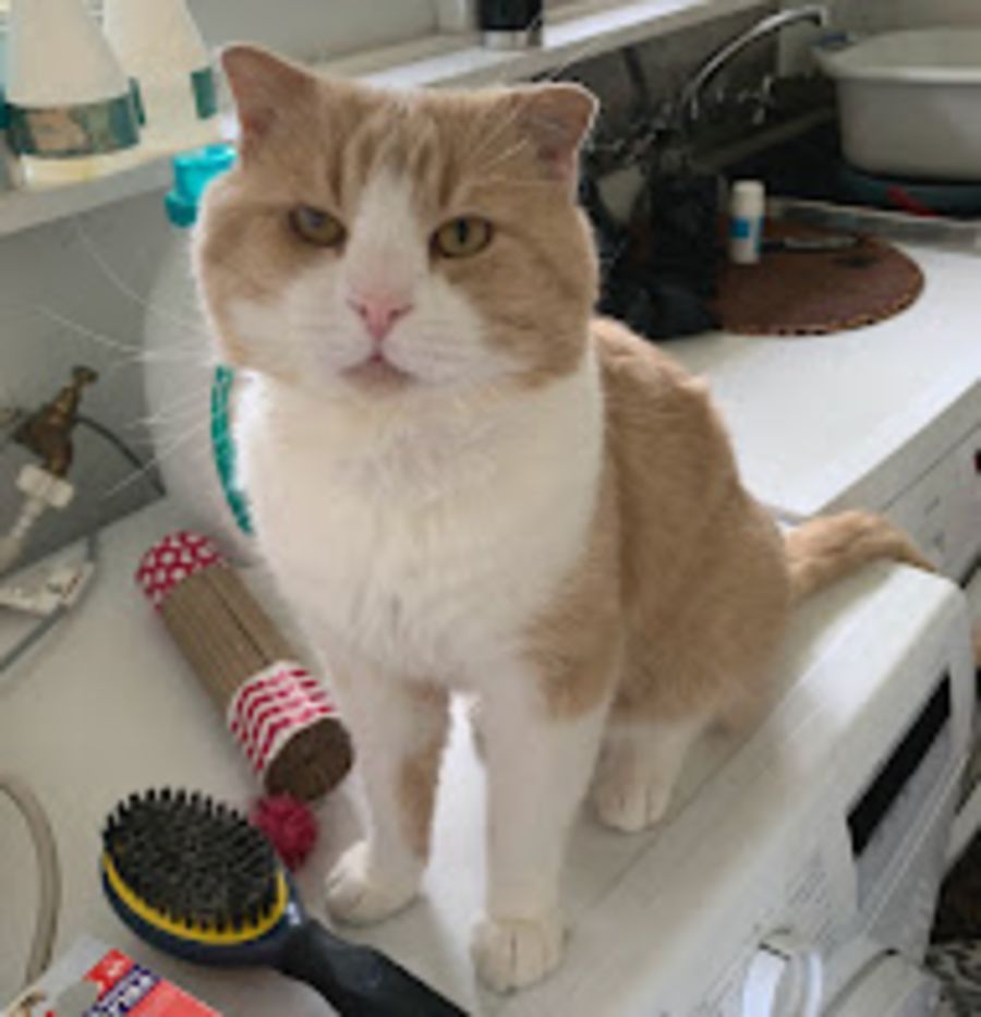 So, if you're looking for a cheek-squeezing, ear-flopping, fur-brushing, love-loving, eye-surgery-surviving, boss-level kitty companion, look no further. Jasper's the name, and ruling the roost is my game. Let's make this furrever home thing official, shall we?