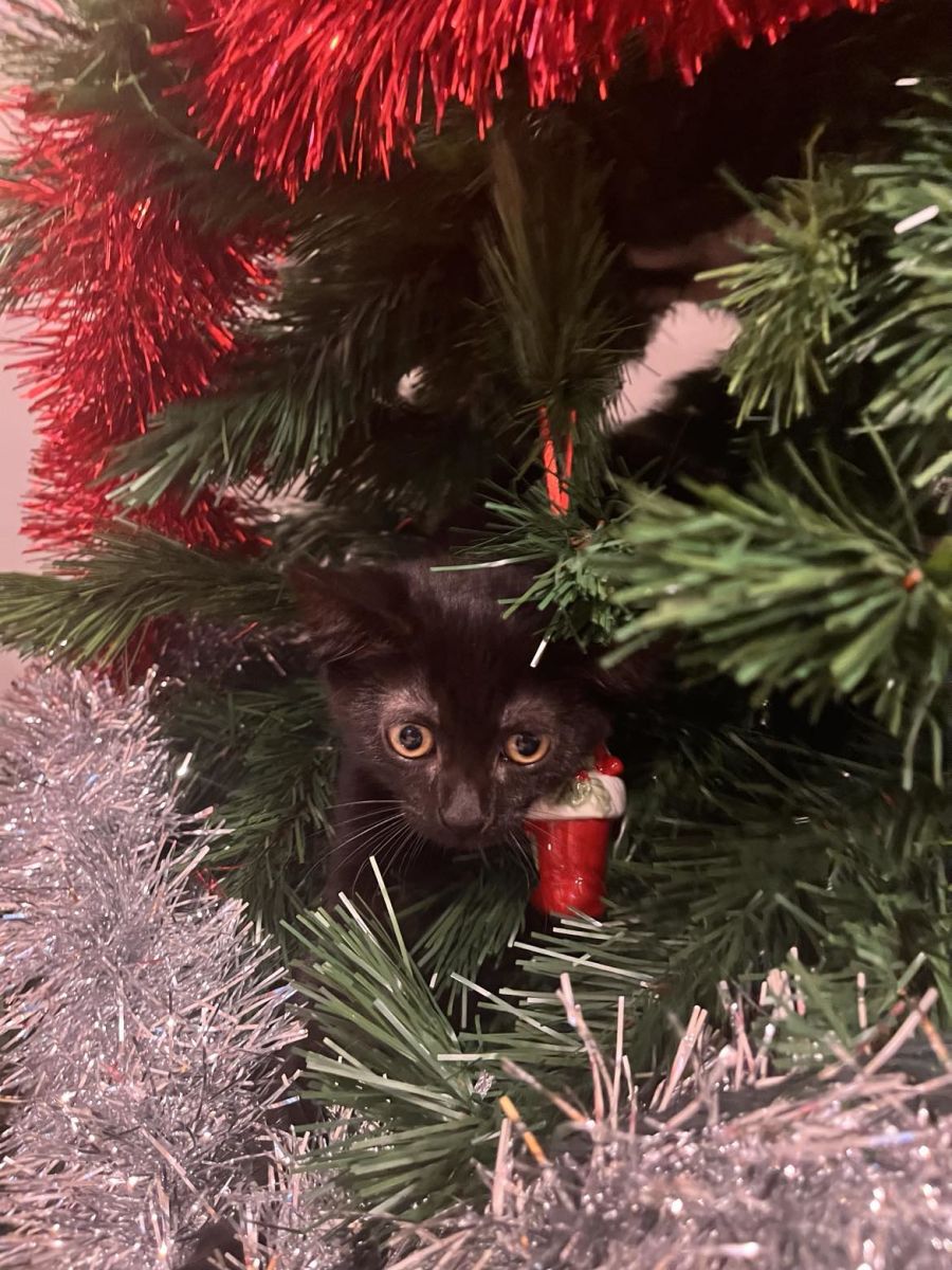 Winnie, fully dressed in black, is slightly braver than her brother, Bear. Don't let that fool you though, Bear has his own set of adventures up his sleeve. Both of these kittens have a unique way of making themselves the center of attention, while also making everyone around them feel loved. With the Christmas tree now up, their playful curiosity is in full swing, making our days filled with laughter.
