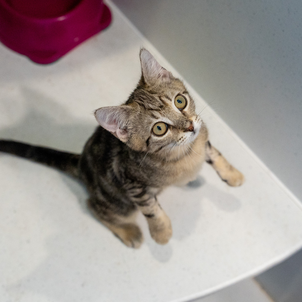 I have perfected the art of the irresistible purr. It's like my secret weapon for getting all the cuddles and chin scratches I could ever want. Life's just one big, exciting string of moments, and I'm here to make every second count - whether I'm chasing my tail or sharing some purr-fectly quiet time with my favourite humans. So, if you're up for a bundle of furry fun and a lifetime of companionship, please consider adopting me!