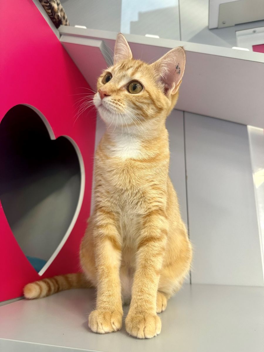 OJ is a real sweetheart. Affectionate and curious, OJ likes to know what you're up to and will head butt you from time to time to remind you that cuddles are required.