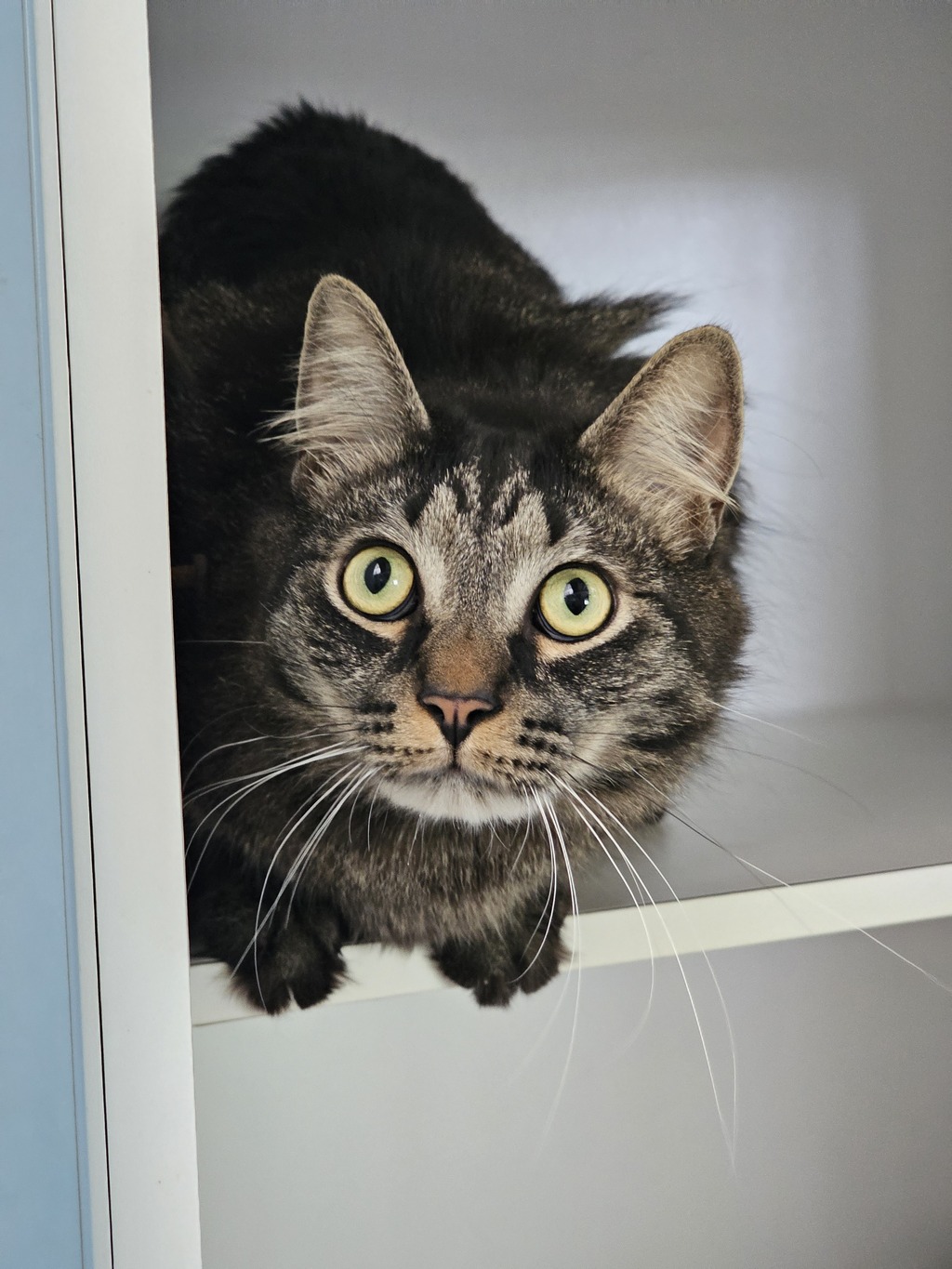 Hello there! I'm Shadow, a big and fluffy tabby cat ready to bring warmth and joy into your home. My luxurious fur is not just for show - it's perfect for cozy cuddle sessions. I'm a true affection enthusiast, always ready to shower you with purrs and headbutts. I'm a playful feline who enjoys the thrill of chasing and pouncing on anything dangling. Let's have some interactive fun together!