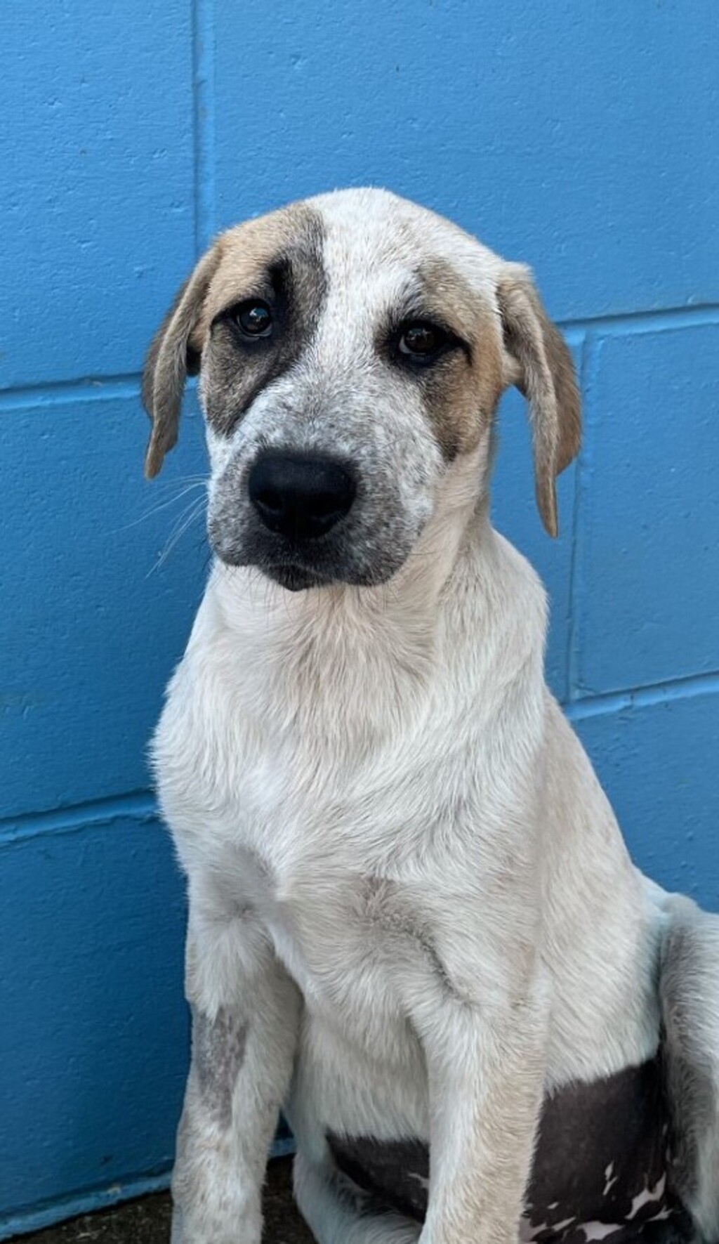 Allie is a young American staffy cross maremma sheepdog ,although allie appears to be a little shy ,we need to remember she has maremma sheepdog in her breeding ,meaning she is bred to be a working dog .The maremma is friendly, alert ,loyal and intelligent ,but are typically not suited to a suburban backyard due to the fact that they are bred to guard livestock in a paddock situation .The confining nature of a backyard ,without a job to do can sometimes lead to some less than desirable behaviours .The fact that allie also has American staffie in her means with some consistent training she would be an excellent family dog. They are trainable & loyal companions. Proper socialisation from an early age is crucial.