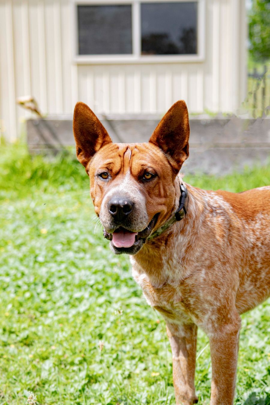 Redmond is abeautiful natured Cattle x Mastiff. He has the looks of a cattle dog except for his big soulful expression which we put down to the Mastiff