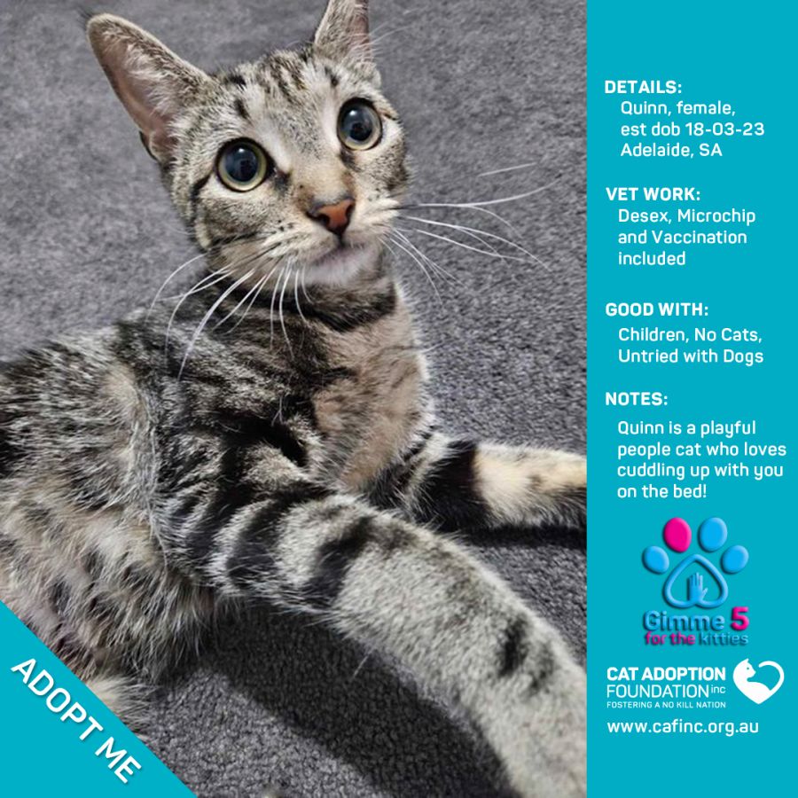 Donate to Quinn - Adoption Fee Sponsored - No fee! at Cat Adoption Foundation Incorporated via Shout