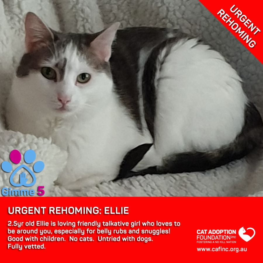 Donate to Ellie Private Rehoming No Charge! at Cat Adoption Foundation Incorporated via Shout