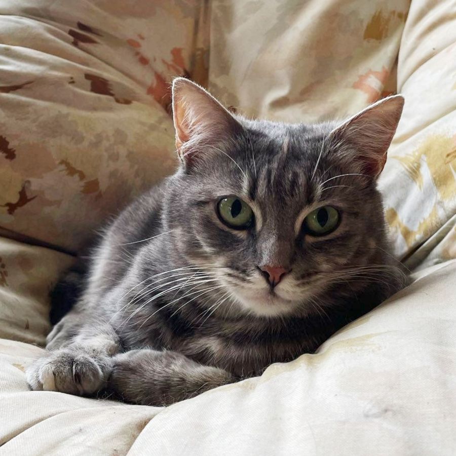 Possum wants to open up and be friendly but there appears to be a wall of trauma, she will occasionally talk to you while preparing her food, talking to her softly and sitting on the ground makes her more at ease, communal treat sessions (with other cats) is the best way to bond with her, she loves playing tiggy with the others and catching them off guard. She is very food motivated, and always at the door waiting for you as you come home, her preferred resting spots are soft material couches and chairs.