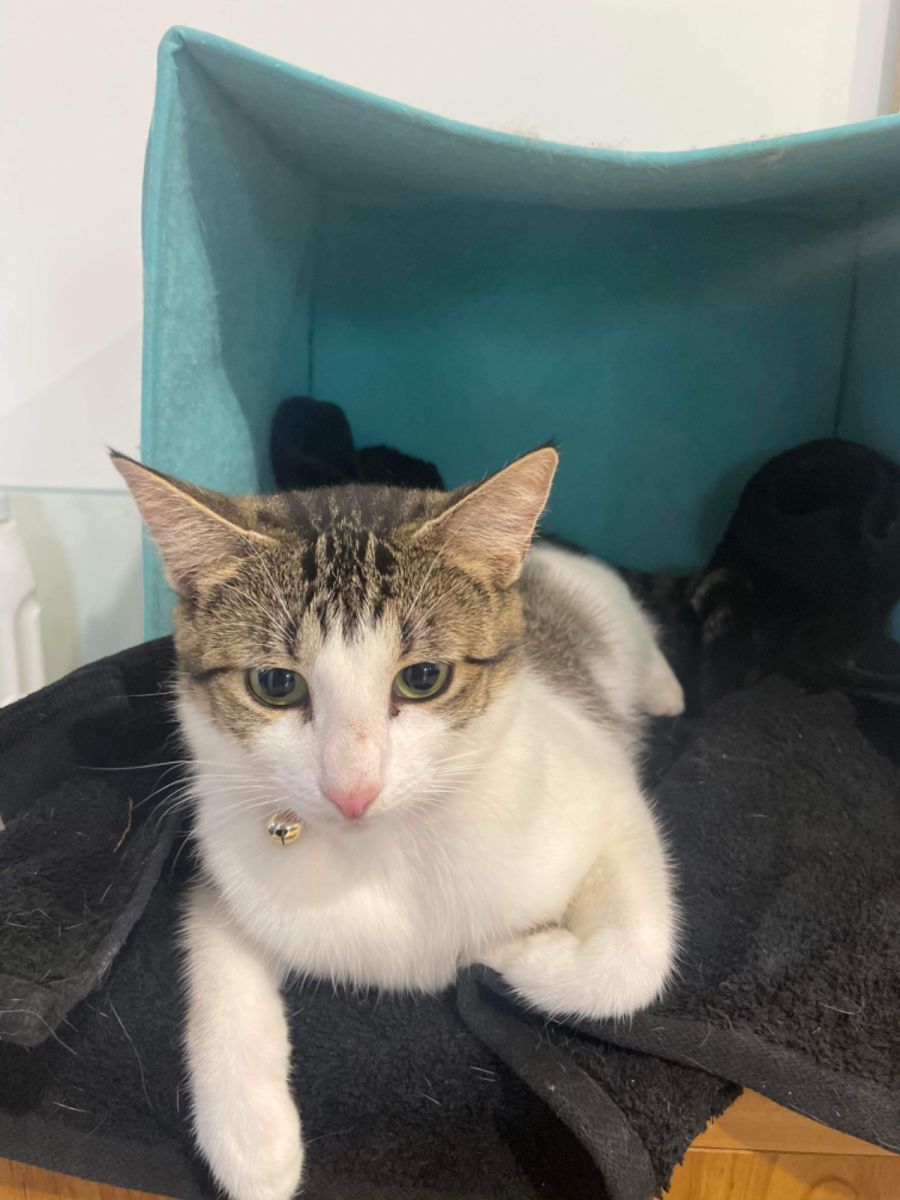 My name is Lilly. I came into Feathers to Fins as a stray kitty, and we soon learned I was pregnant! I had 4 beautiful babies, who are now finding their own homes to go to, and I need a home too!